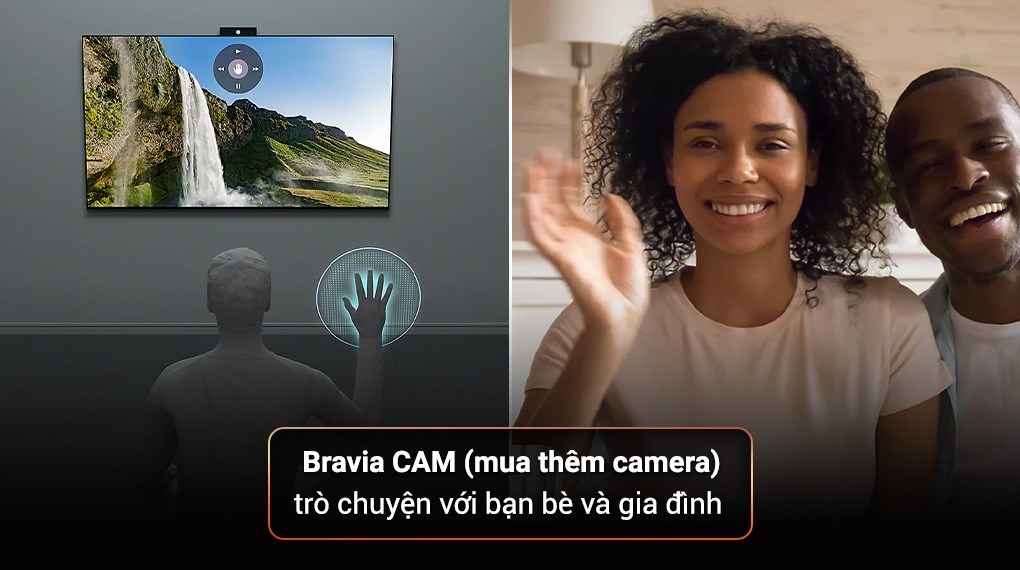 - Bravia CAM cài đặt thêm hỗ trợ thực hiện các cuộc gọi video call phục vụ họp mặt, trò chuyện với đối tác, đồng nghiệp, người thân qua màn hình Google Tivi to rộng. Khi không sử dụng, bạn có thể thao tác đóng nắp camera để đảm bảo quyền riêng tư cho không gian sống của mình.