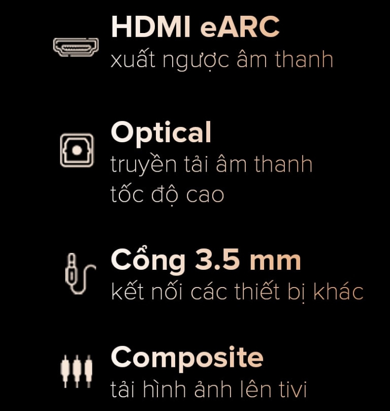 1 cổng 3.5 mm, 1 cổng Optical (Digital Audio), 1 cổng eARC (ARC)