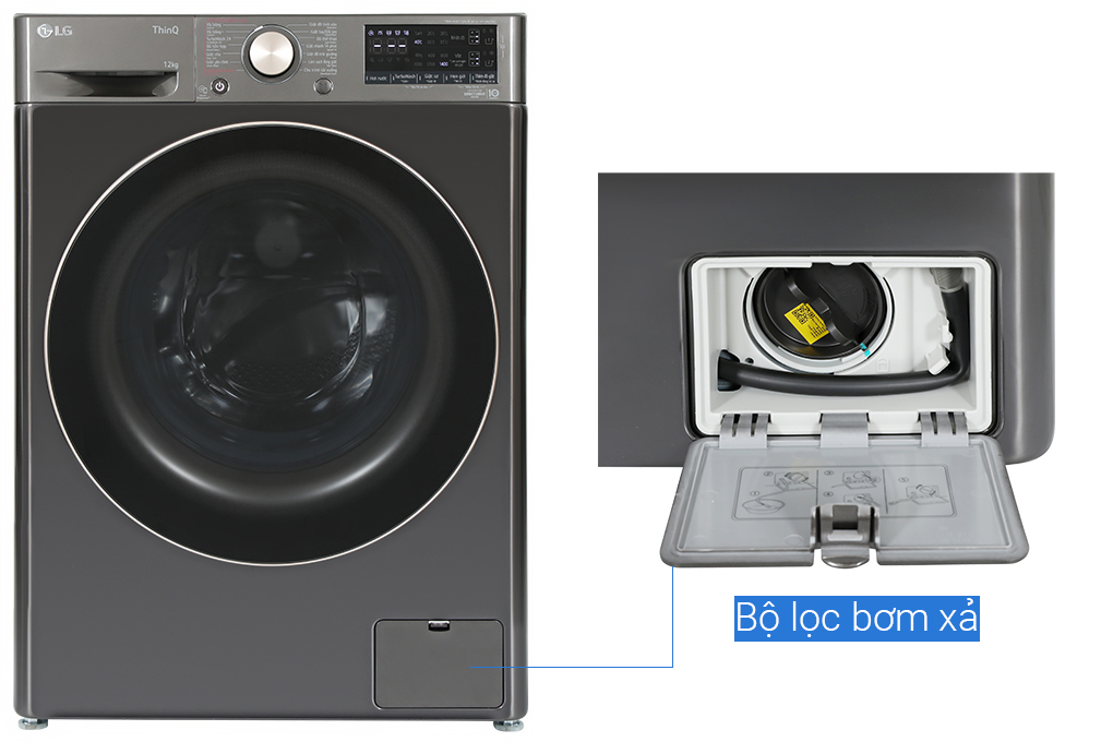 - Máy giặt LG Inverter 12 kg FV1412S3BA có kiểu dáng hiện đại với gam màu đen sang trọng và kiểu lồng ngang - cửa trước đậm chất phong cách châu Âu, phù hợp cho mọi không gian giặt giũ của gia đình.
