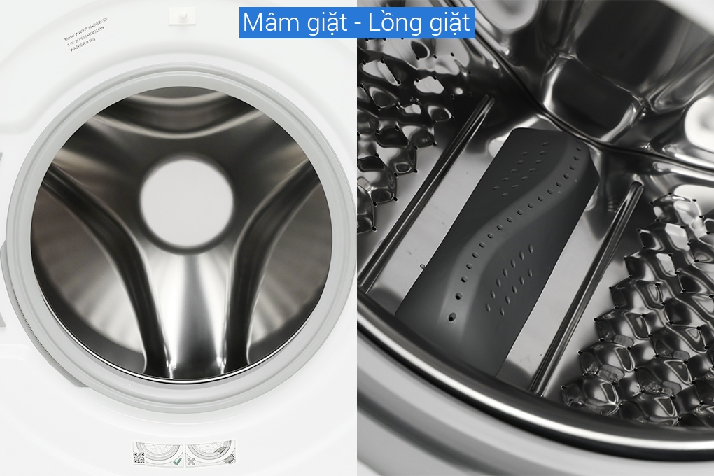 - Lồng giặt: thép không gỉ, bền bỉ, hạn chế mảng bám và vi khuẩn sinh sôi trong môi trường ẩm ướt.