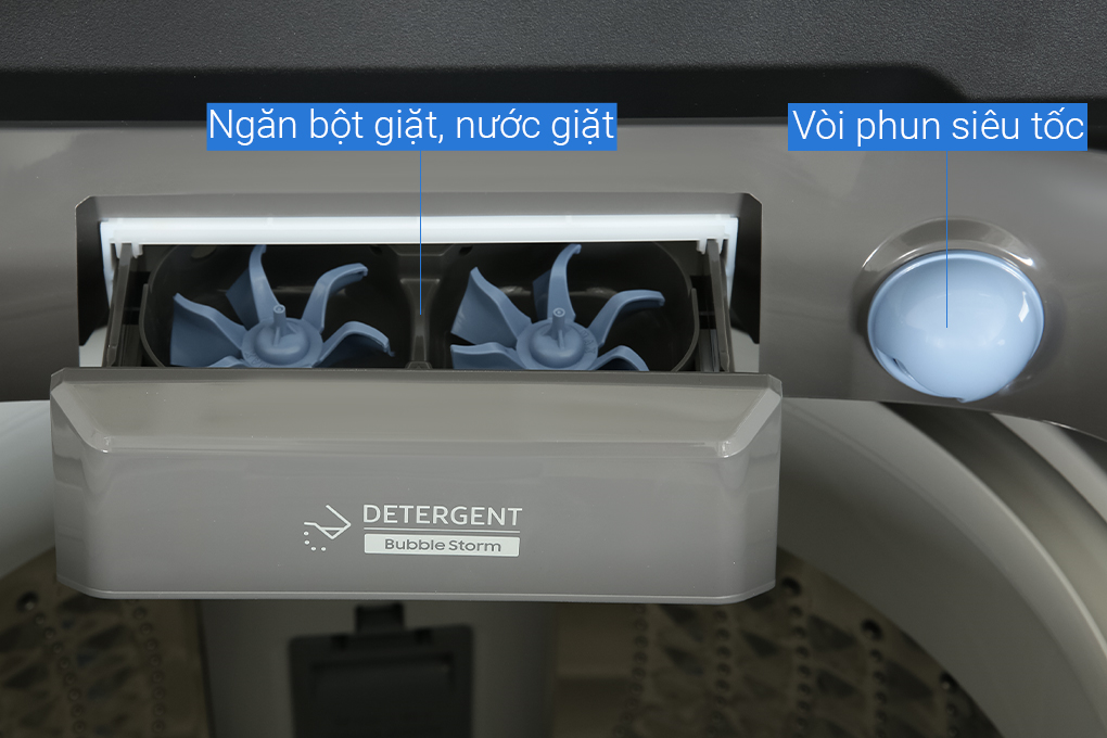 - Chế độ giặt Super Speed: dưới lực nước mạnh mẽ từ vòi phun nước siêu tốc, các bong bóng xà phòng siêu mịn sẽ được tăng tốc mức độ thẩm thấu sâu vào bên trong sợi vải, nhờ đó góp phần đánh bay vết bẩn cứng đầu hiệu quả và tiết kiệm thời gian giặt đến 40% cho nhiều chế độ giặt được thiết lập trên máy.