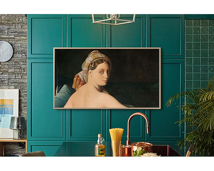 Chiêm ngưỡng The Frame như một bức tranh nghệ thuật đích thực với giá treo áp sát vào tường. Dễ dàng xoay giá đỡ để có được góc nhìn phù hợp và thoải mái nhất.
