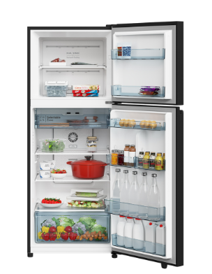 - Tủ lạnh Hitachi với thiết kế kiểu dáng ngăn đá trên quen thuộc với người dùng, tone màu đen dễ dàng kết hợp cùng với nội thất trong gia đình.