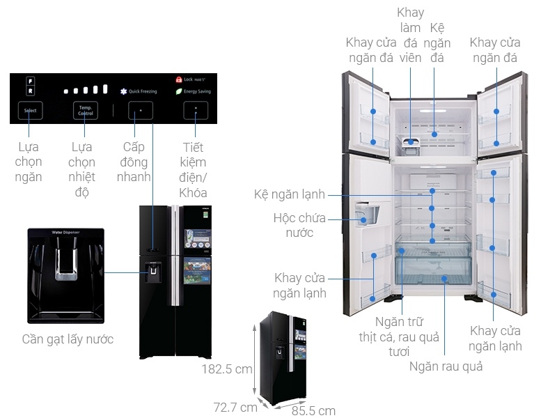 Một điểm đặc biệt mà không thể bỏ qua khi nói tới chiếc Hitachi R-FW690PGV7 chính là tính năng lấy nước được lắp ngay bên ngoài cửa tủ, bạn sẽ nhanh chóng sở hữu cho mình một cốc nước mát lạnh mà không cần mở cửa tủ nhiều lần. Đây chắc chắc là một sự tinh tế vô cùng hoàn mĩ của nhà thiết kế khi muốn mang tới những điều tiện dùng nhất cho người dùng bằng cả tâm huyết.