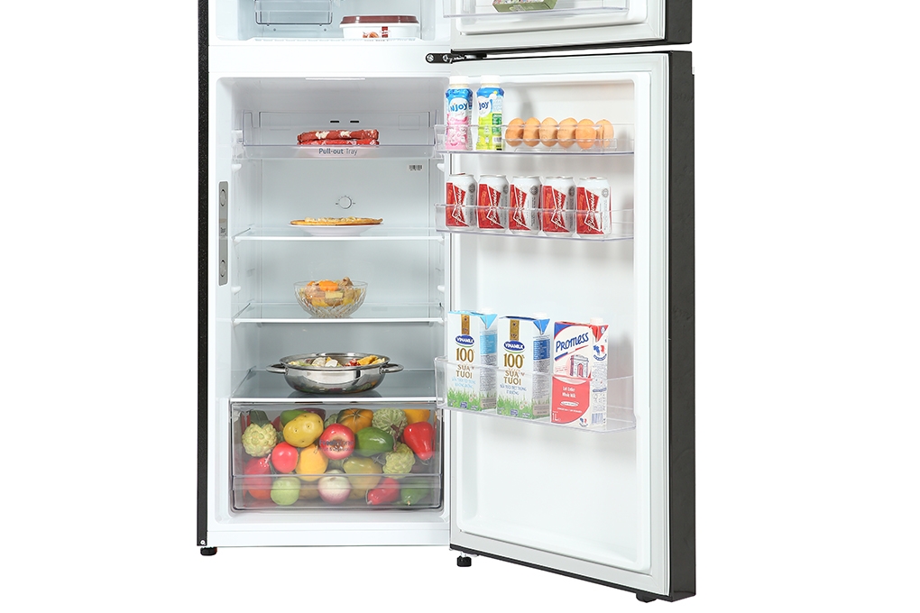- Tủ lạnh LG này có ngăn rau dạng kéo dễ dàng cho và lấy rau củ, đồng thời giữ ẩm tối ưu.