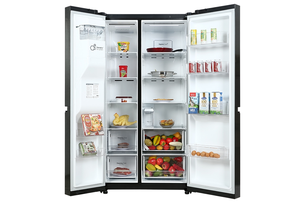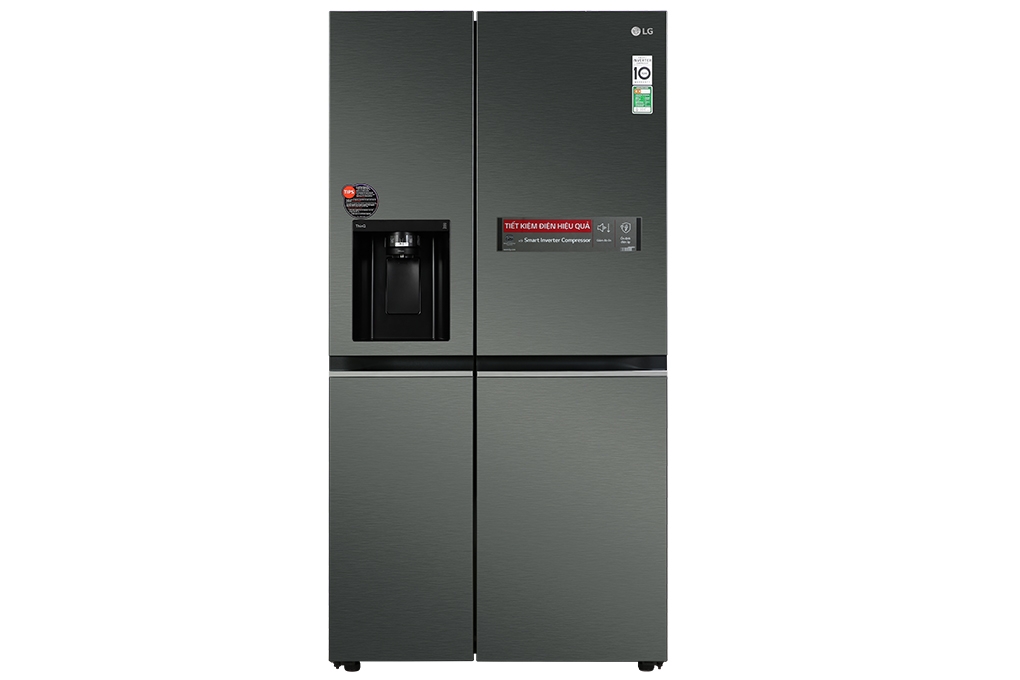 - Tủ lạnh LG này thuộc loại Side by side 2 cánh, cửa tủ làm bằng thép chống gỉ chắc chắn, bền bỉ.