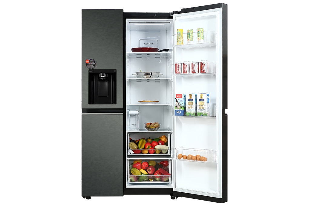 Tủ lạnh LG Inverter 635 Lít GR-D257MC thiết kế màu đen sang trọng, với bộ lọc Hygiene FRESH+™ loại bỏ vi khuẩn, công nghệ DoorCooling+ làm lạnh từ cánh cửa tủ, tích hợp khay lấy nước ngoài diệt khuẩn UV nano tiện lợi, ngăn làm đá tinh gọn SpacePlus™ tiết kiệm diện tích.