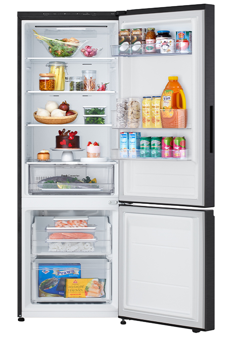 - Ngăn lạnh được bố trí nằm trên ngăn đá nên người dùng không cần cúi người để lấy thực phẩm. Song song đó, ngăn lạnh có dung tích 248 lít rộng rãi nên bạn có thể thoải mái lưu trữ thực phẩm.