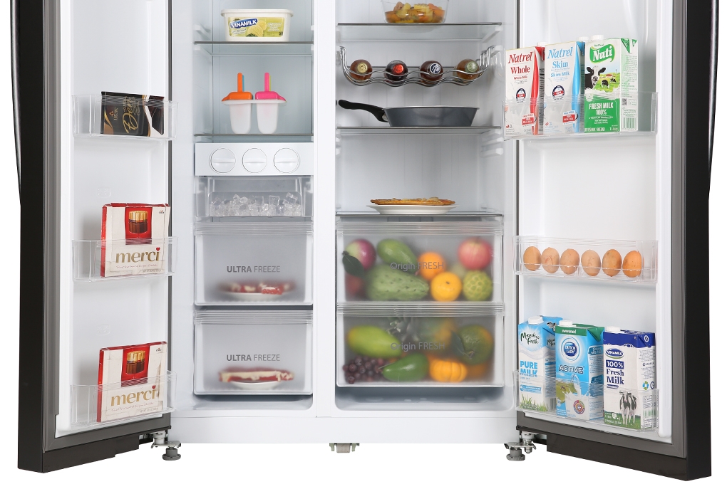 Khả năng lưu trữ thực phẩm nhiều với dung tích 493 lít, trong đó ngăn đá chiếm 155 lít và ngăn lạnh chiếm 338 lít, tủ lạnh Toshiba GR-RS637WE-PMV(06)-MG là một trong những lựa chọn phù hợp cho những hộ gia đình có trên 5 thành viên, hoặc ít hơn nhưng lại có nhu cầu bảo quản thực phẩm nhiều mỗi ngày.